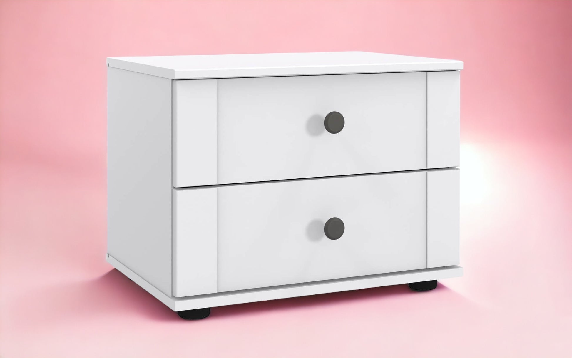 Mit 2 Schubladen. Front und Korpus Weiß.