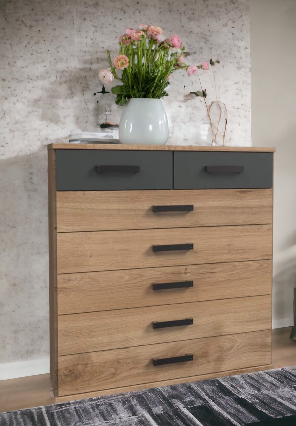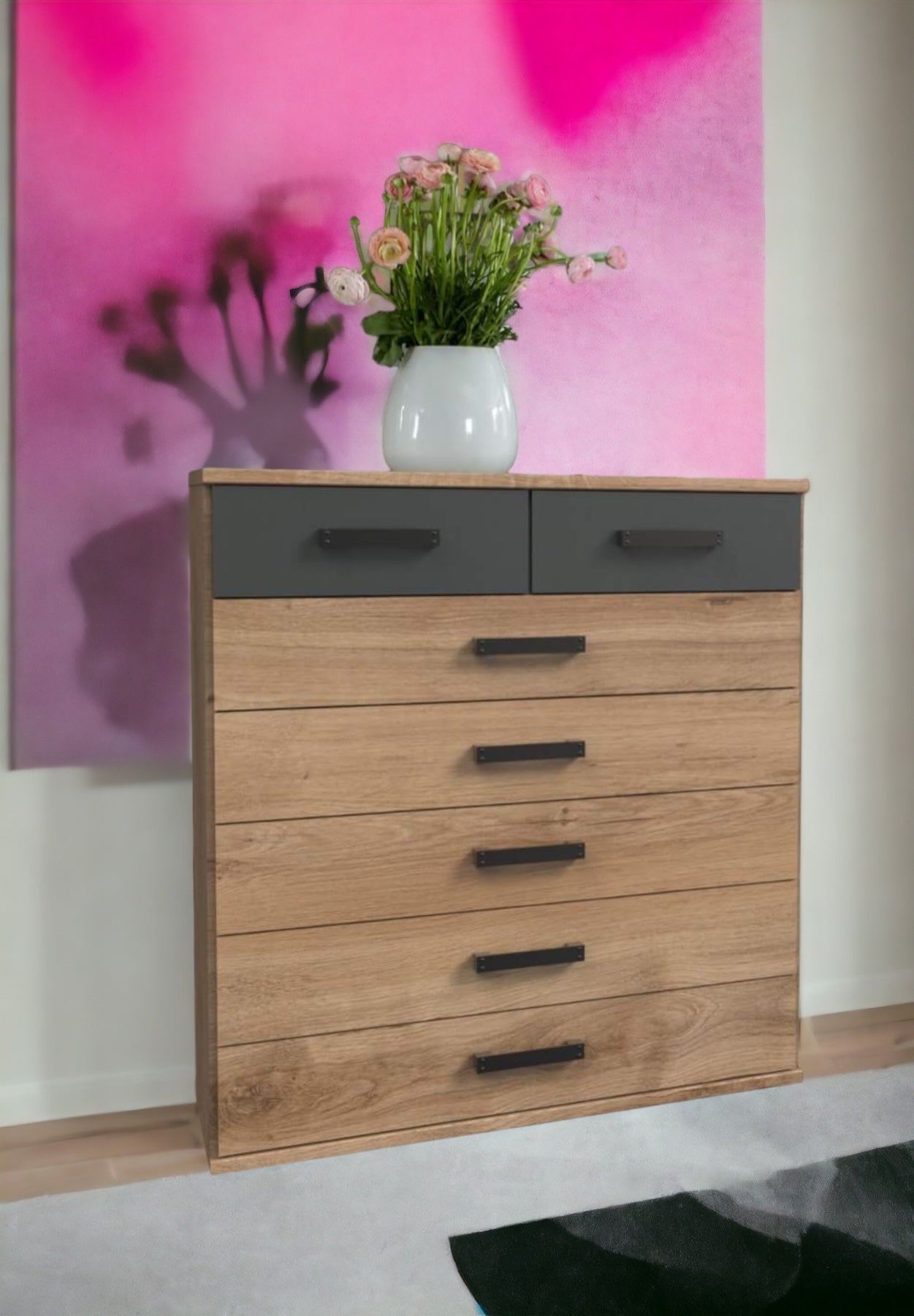 Mit 7 Schubladen. Dekor: Plankeneiche-Nachbildung, Abs. Graphit.