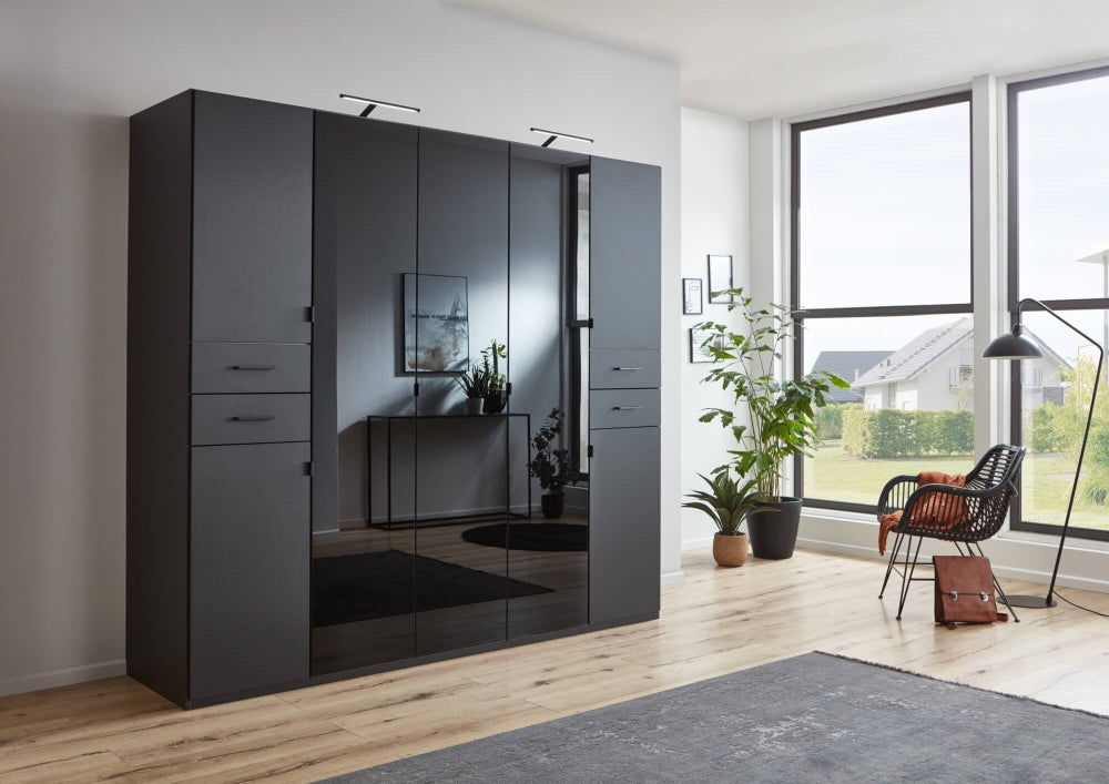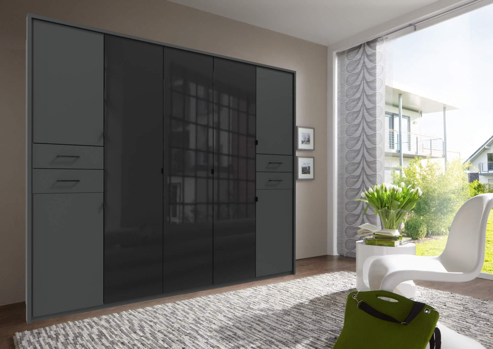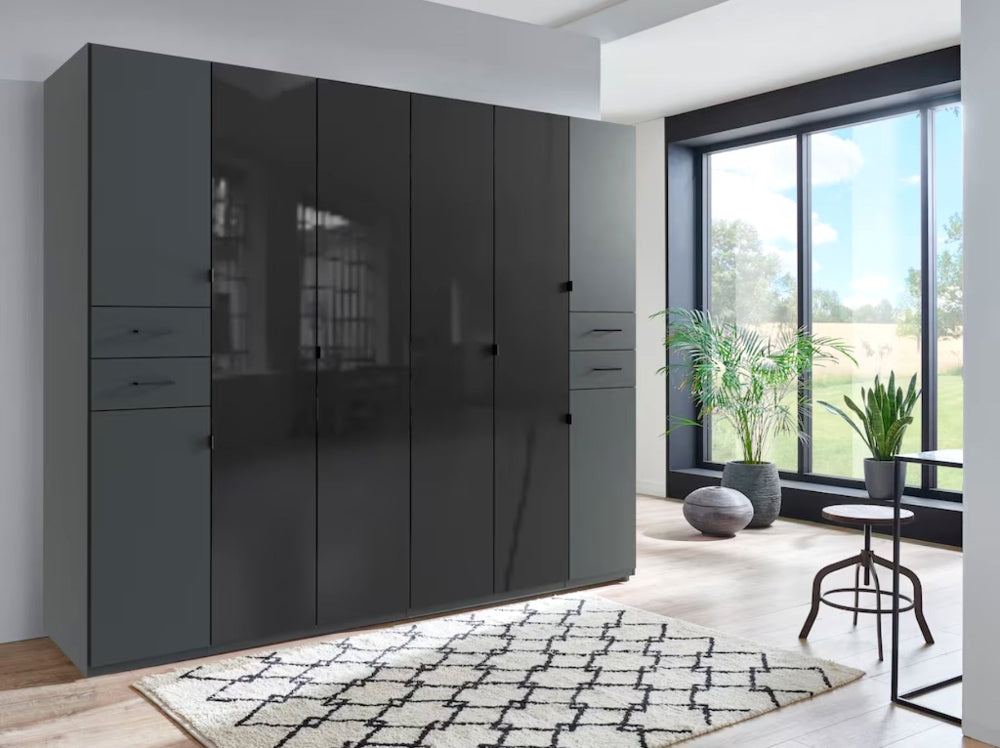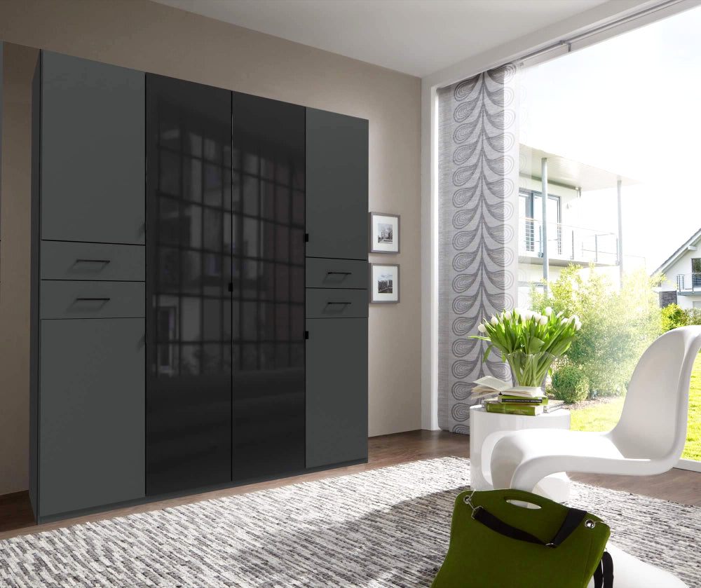 Der “Danzig” Kleiderschrank von Wimex ist die perfekte Wahl für alle, die modernes Design mit funktionaler Eleganz verbinden möchten. Der Schrank ist in zwei stilvollen Farben erhältlich: klassisches Weiß und edles Graphit. Das Highlight dieses Schranks sind die farbigen Glastüren in der Mitte, die nicht nur modern wirken, sondern dem Raum einen Hauch von Eleganz verleihen.