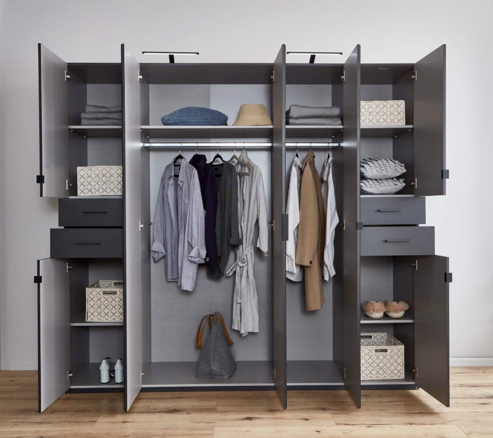 Zusätzlich bietet der “Danzig” geräumige, leicht zugängliche Schubladen, in denen Sie Ihre Kleidung und Accessoires organisiert und stets griffbereit aufbewahren können. Der Schrank bietet alles, was Sie für eine aufgeräumte und stilvolle Umgebung benötigen.