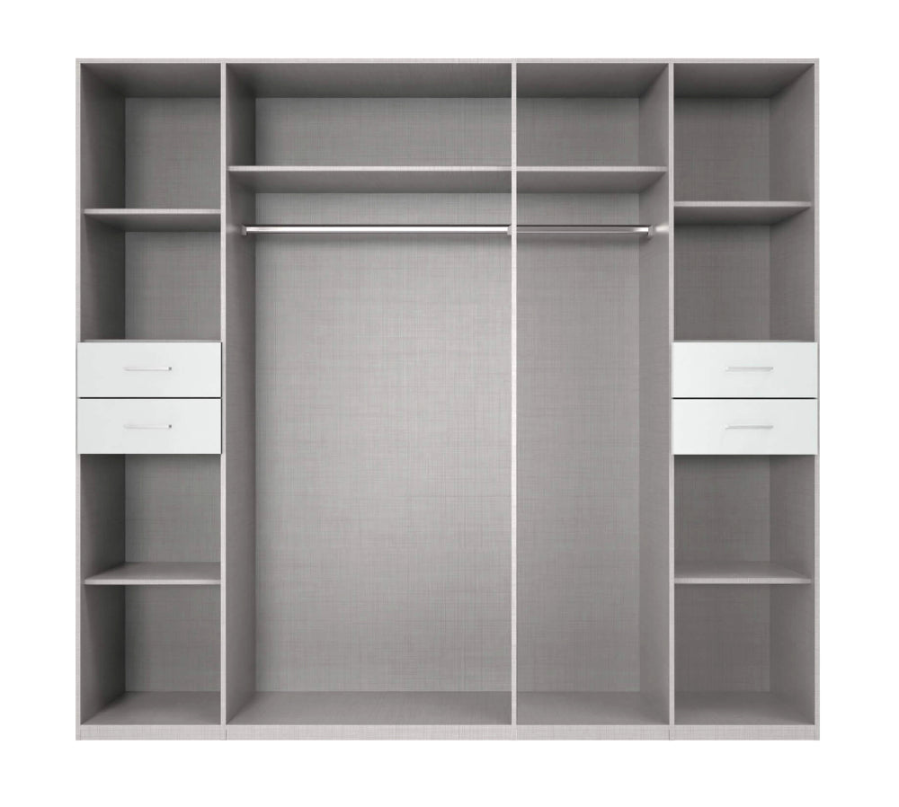 Für noch mehr Komfort können Sie Ihren Schrank mit folgendem Zubehör ergänzen: zusätzliche Einlegeböden oder Passepartout-Rahmen mit/ohne Beleuchtung.