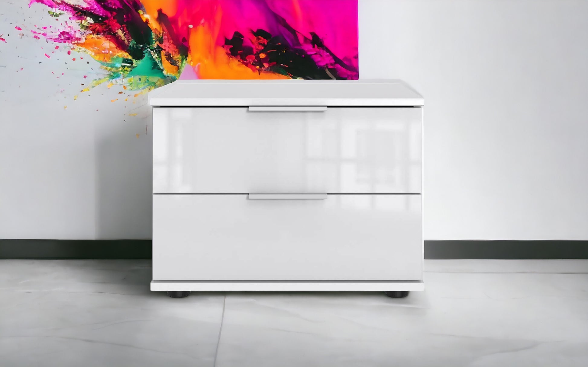 Mit 2 Schubladen. Dekor: Weiß, Schubladenfronten Glas Weiß.