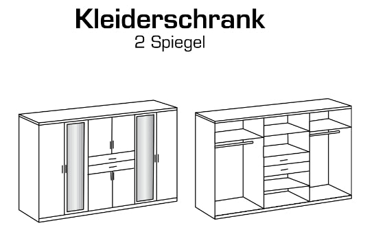 Drehtürenschrank Diver mit Spiegel und Schubladen B/H/T ca. 225/270 x 208 x 58 cm