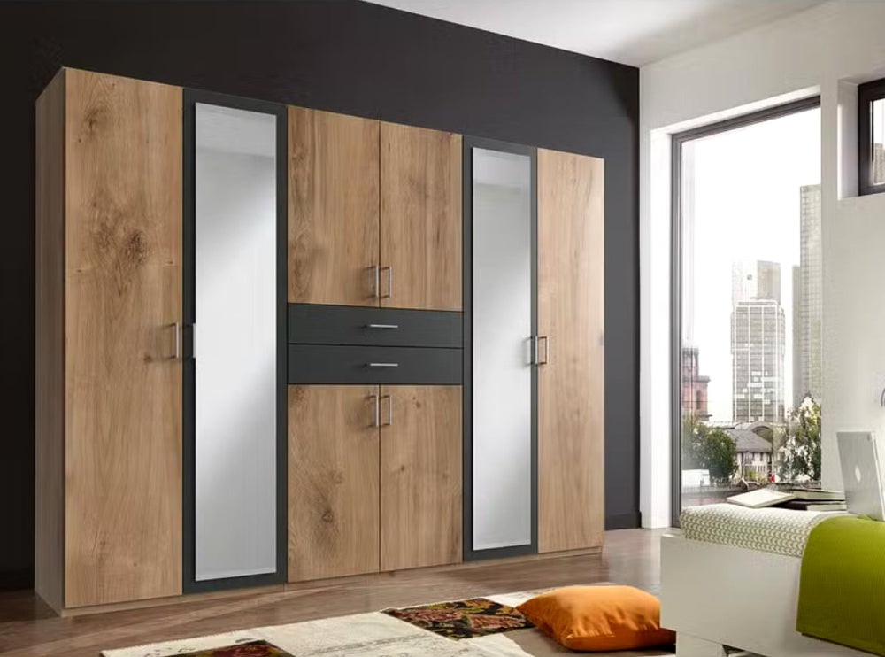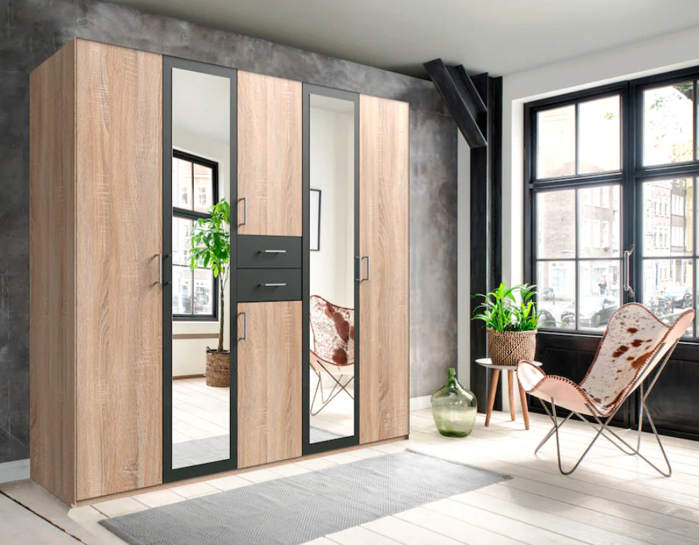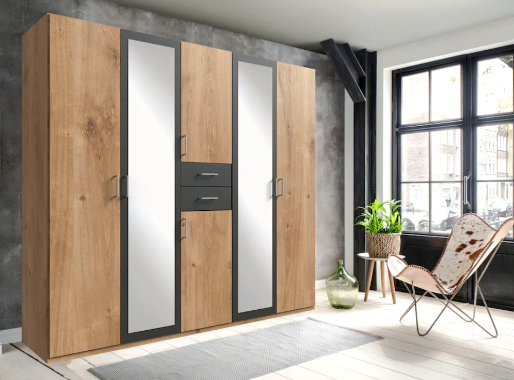 Der “Diver” Kleiderschrank von Wimex passt sich mit seiner großen Auswahl an sechs stilvollen Farbvarianten perfekt in jedes Interieur ein. Ob Sie es klassisch oder modern mögen – mit “Diver” finden Sie immer die passende Farbkombination, die Ihrem Raum Charakter und Charme verleiht. Die eleganten Spiegeltüren in der Mitte schaffen dabei nicht nur einen modernen Look, sondern vergrößern den Raum optisch und lassen ihn heller wirken.