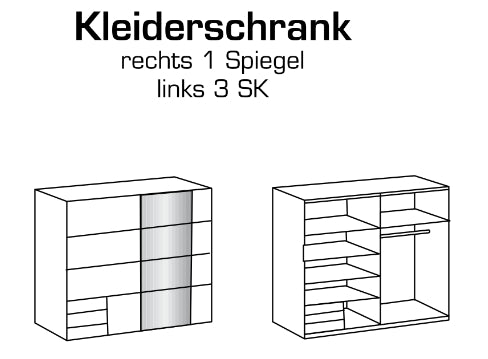 Schwebetürenschrank Emden mit/ohne Spiegel und Schubladen B/H/T ca. 135/180 x 198 x 65 cm