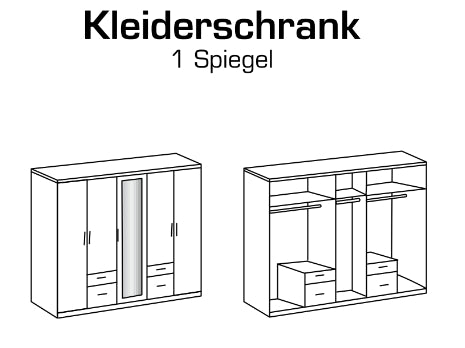 225 x 108 x 58 cm (5-türig mit 1 Spiegeltür)