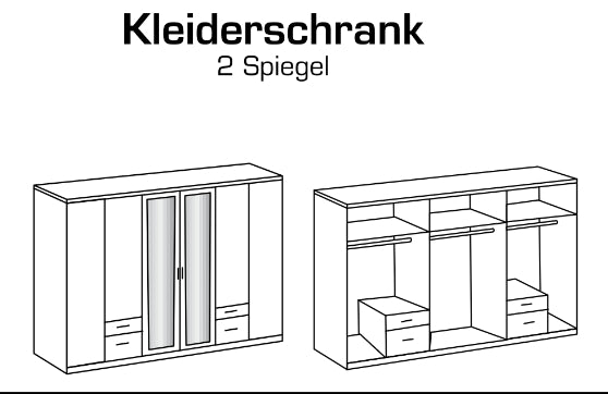 270 x 108 x 58 cm (6-türig mit 2 Spiegeltüren)