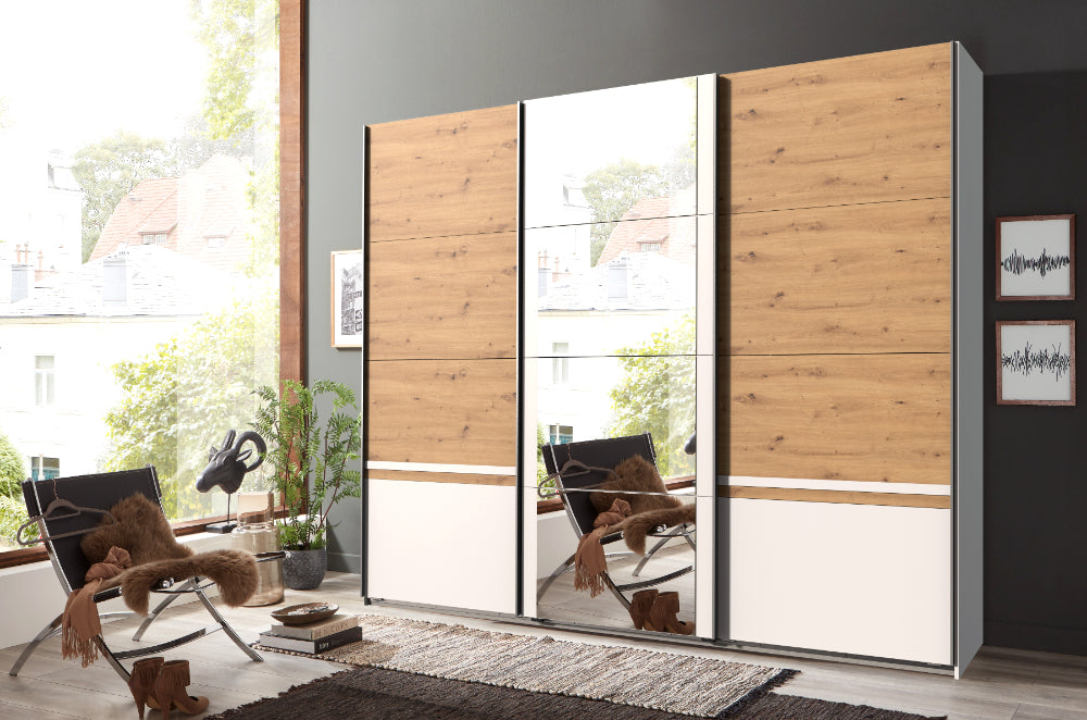 Schwebetürenschrank Gibraltar mit Spiegeltür B/H/T ca. 270 x 208 x 64 cm