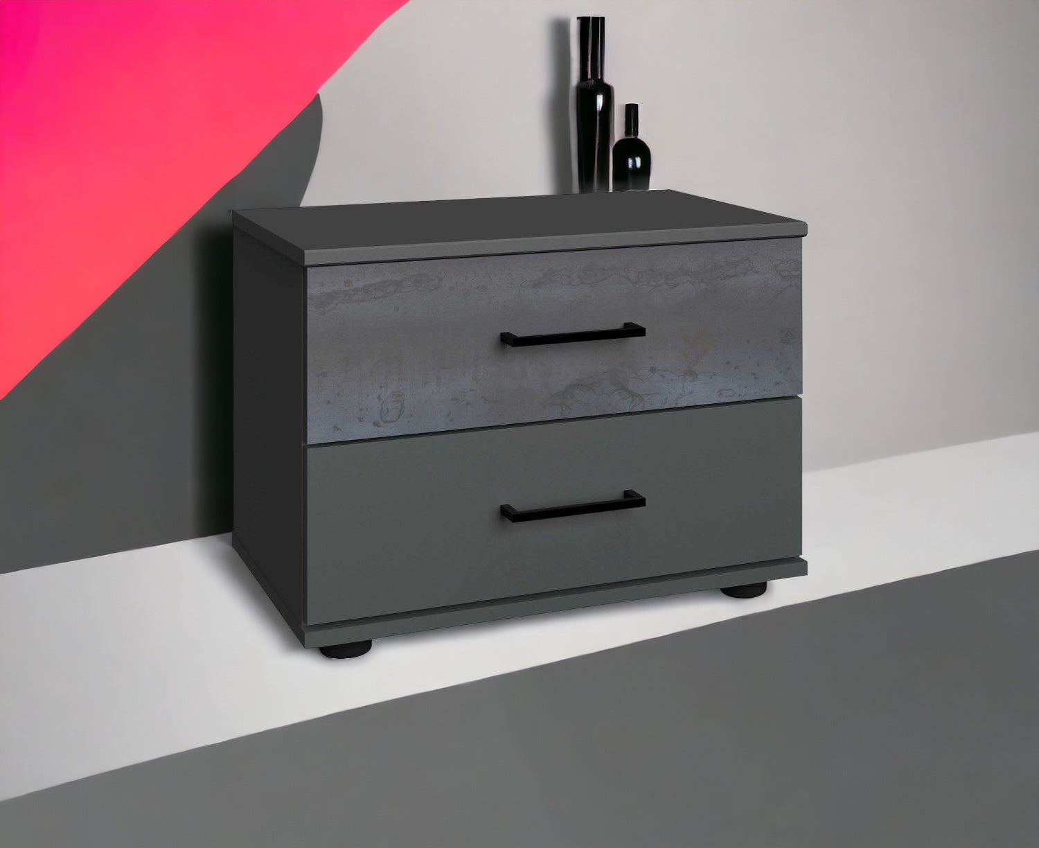 Mit 2 Schubladen. Dekor: Front Digi-steel Optik, Korpus + Abs. Graphit.