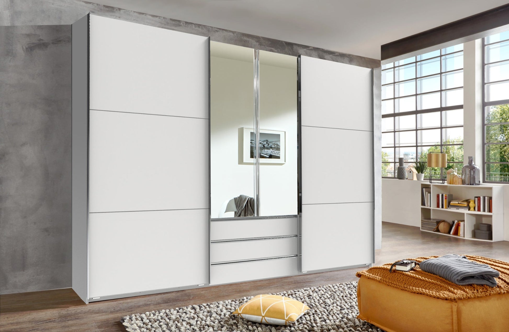 Verleihen Sie Ihrem Schlafzimmer einen modernen Touch mit dem Wimex Funktions-Schwebetürenschrank Magic! Die 2 Spiegeltüren bieten zusätzlichen Stauraum und reflektieren das Licht, um Ihr Zimmer größer und heller erscheinen zu lassen. Die Maße von ca. 300 x 216 x 65 cm und mit 3 Schubladen in der Mitte bietet der Schrank viel Platz für Ihre Kleidung und Accessoires und lässt gleichzeitig Ihr Schlafzimmer elegant und ordentlich aussehen. Perfekte Kombination aus Stil und Funktionalität!