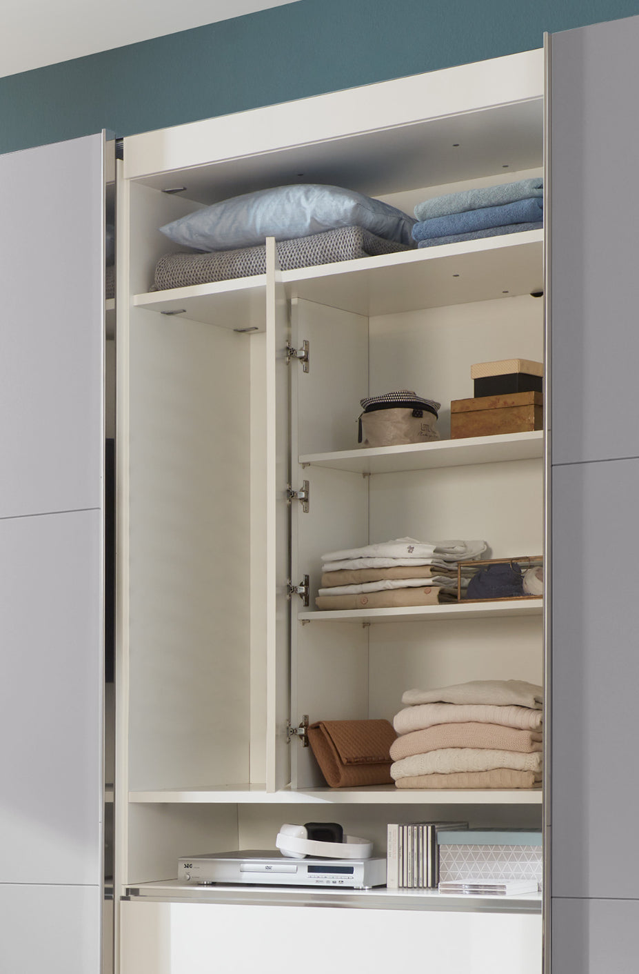 Für noch mehr Komfort können Sie Ihren Schrank mit folgendem Zubehör ergänzen: zusätzliche Einlegeböden, Wäscheeinteilung oder LED-Kleiderschrankbeleuchtung.