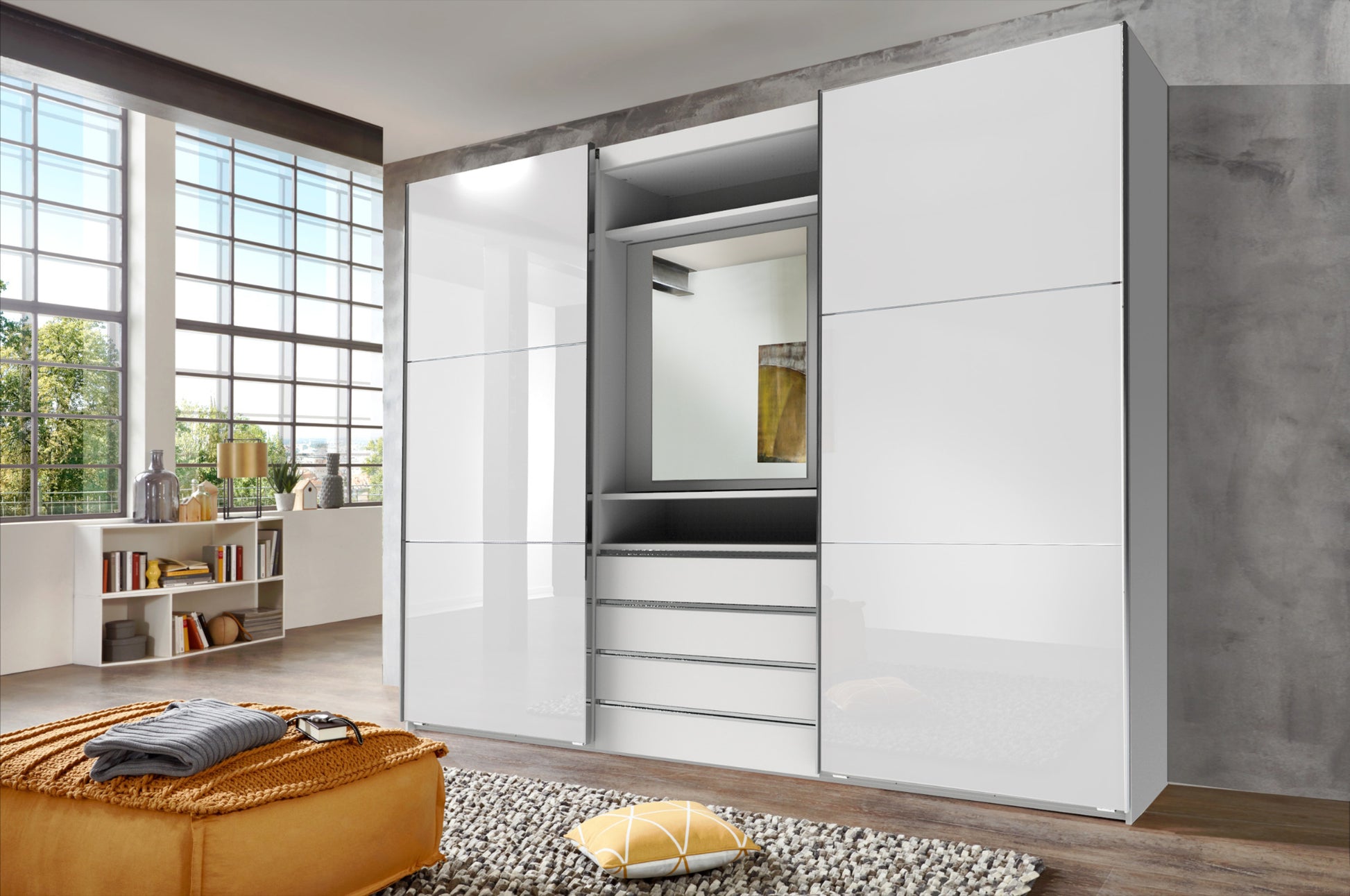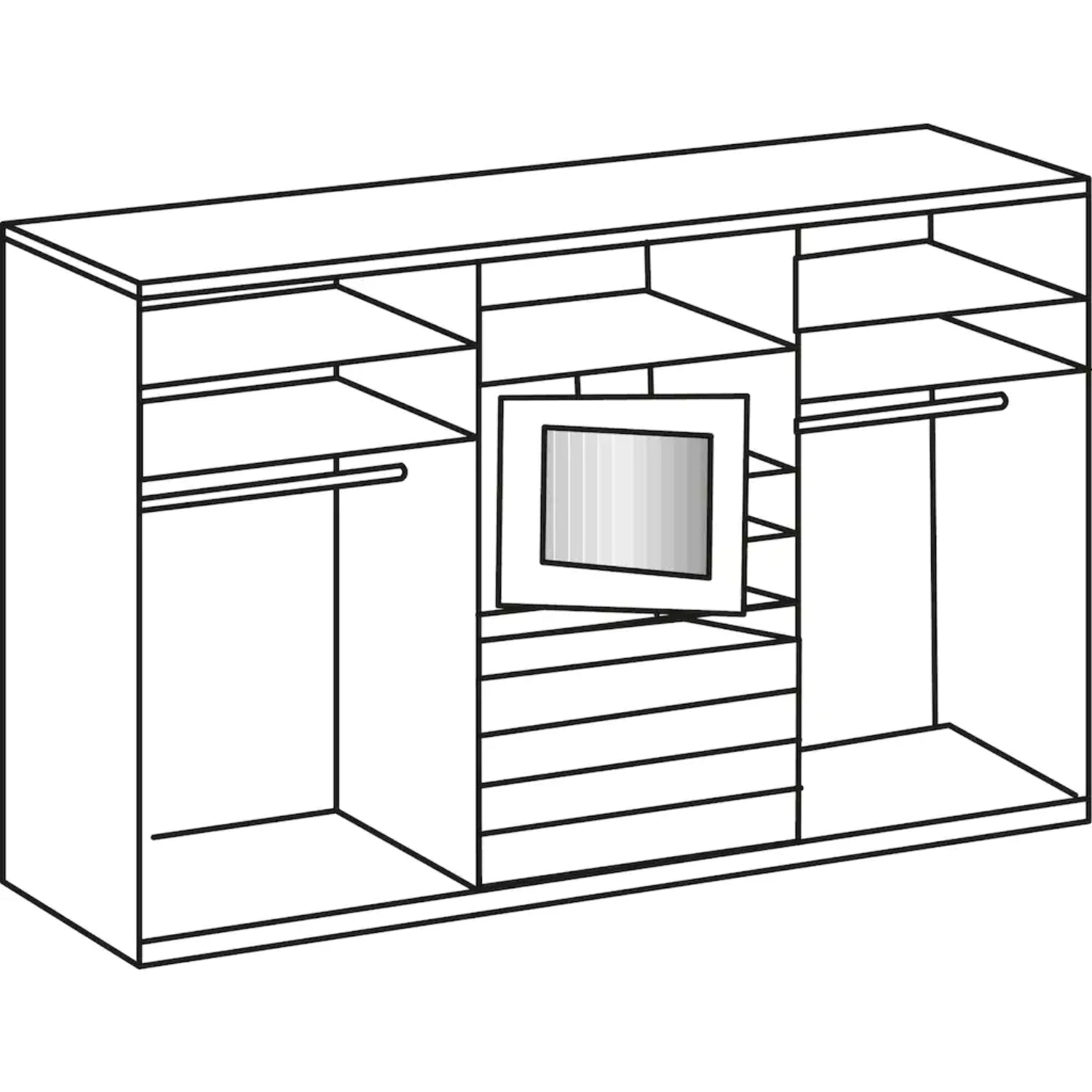 Verwandeln Sie mit dem Wimex Funktions-Spiegel-Schwebetürenschrank MagicGlas Ihr Schlafzimmer in ein exklusives, luxuriöses Refugium. Dieser Schrank beeindruckt mit seiner Höhe von 236 cm und einem Spiegel-Element in der Mitte, das sich drehen lässt. Neben viel Stauraum bietet er auch eine elegante Note. In drei Farbvarianten erhältlich, verfügt er über VIP-Funktion und 4 Schubladen und vereint somit modernes Design mit praktischer Funktionalität. Maße B/H/T: 300 x 236 x 65 cm.