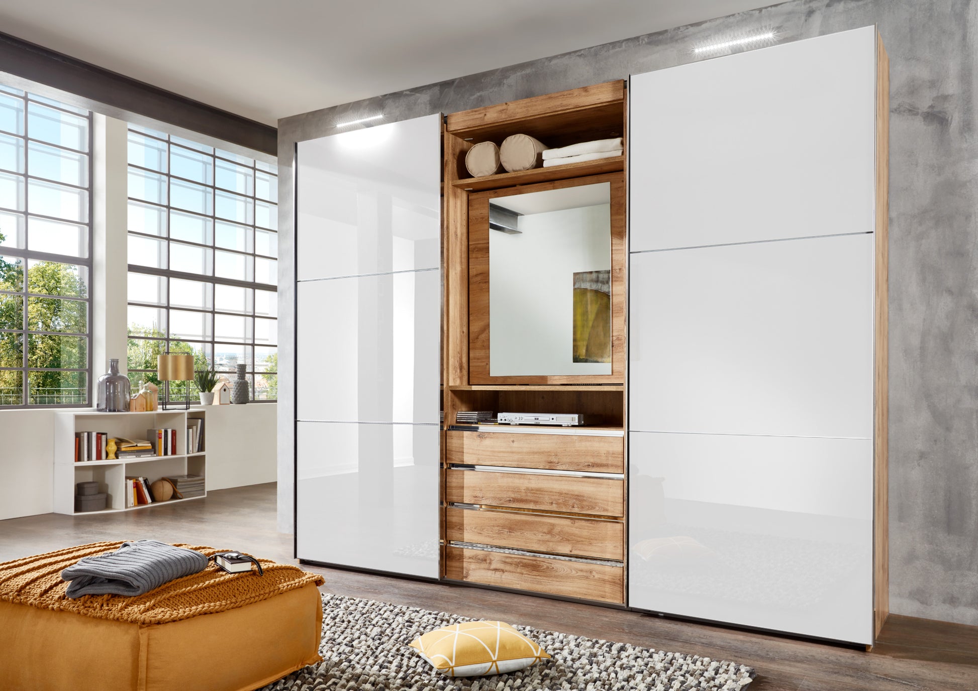 Für noch mehr Komfort können Sie Ihren Schrank mit folgendem Zubehör ergänzen: zusätzliche Einlegeböden, Wäscheeinteilung oder LED-Kleiderschrankbeleuchtung.