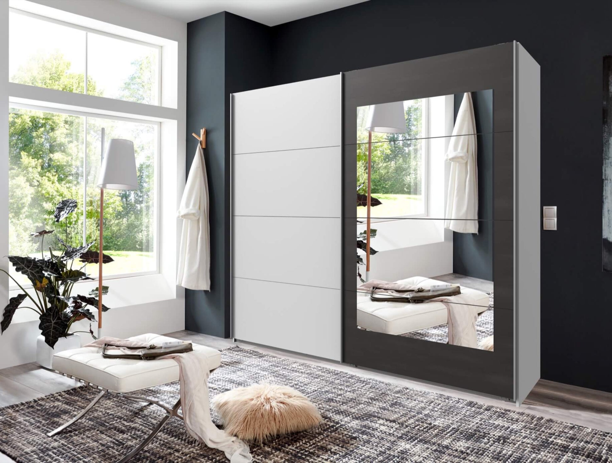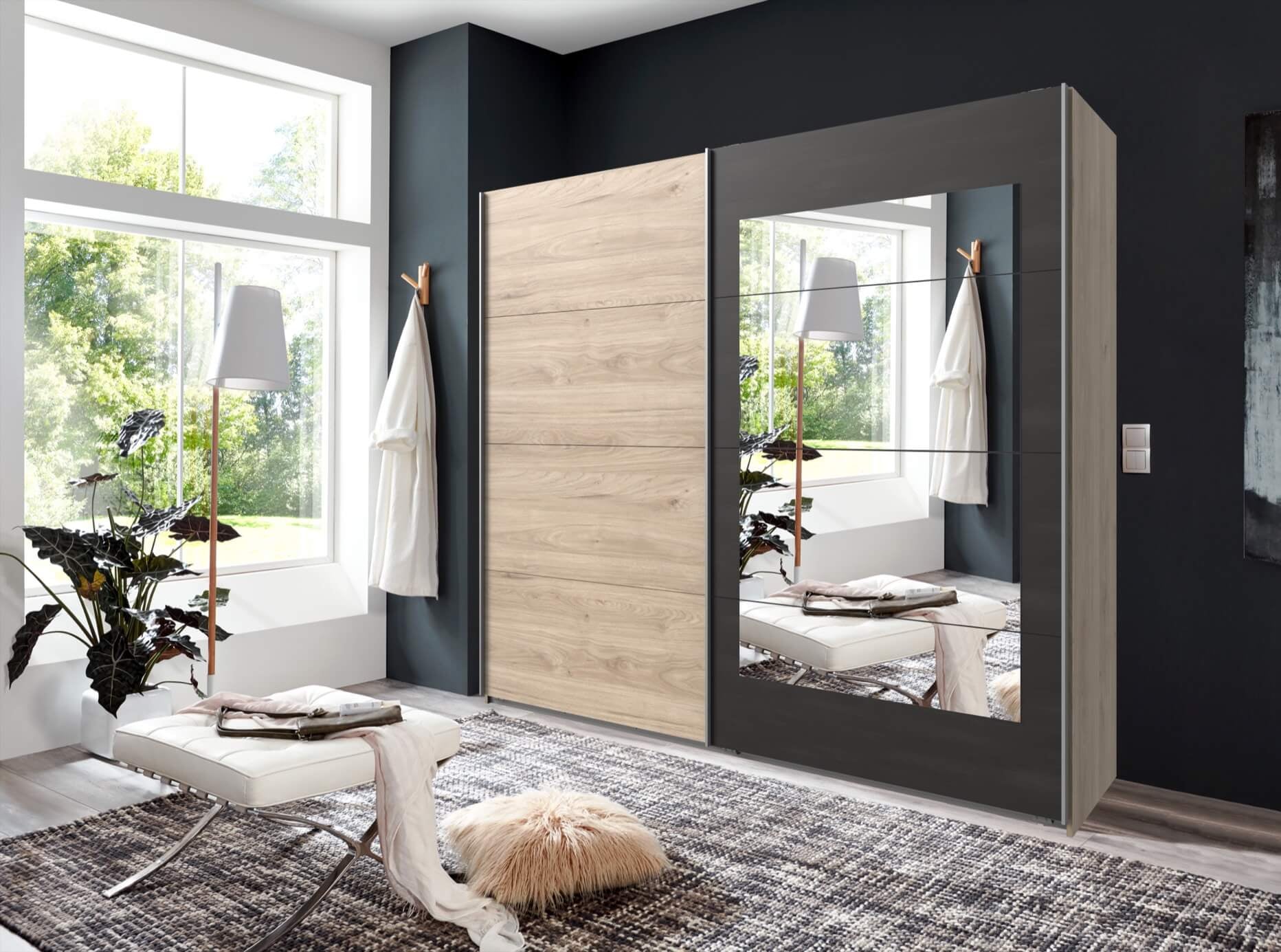 Schwebetürenschrank Minden 2-türig mit Teilspiegeltür B/H/T ca. 225 x 208 x 65 cm
