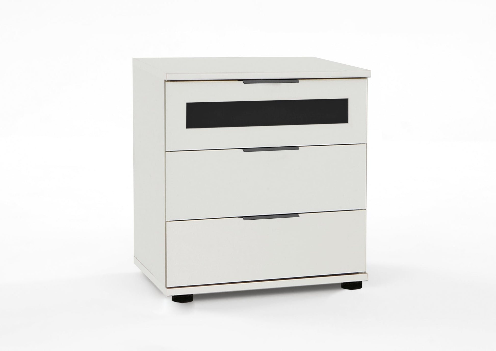 3 Schubladen, Front und Korpus Weiß, Abs. Graphit, Glas Grey.