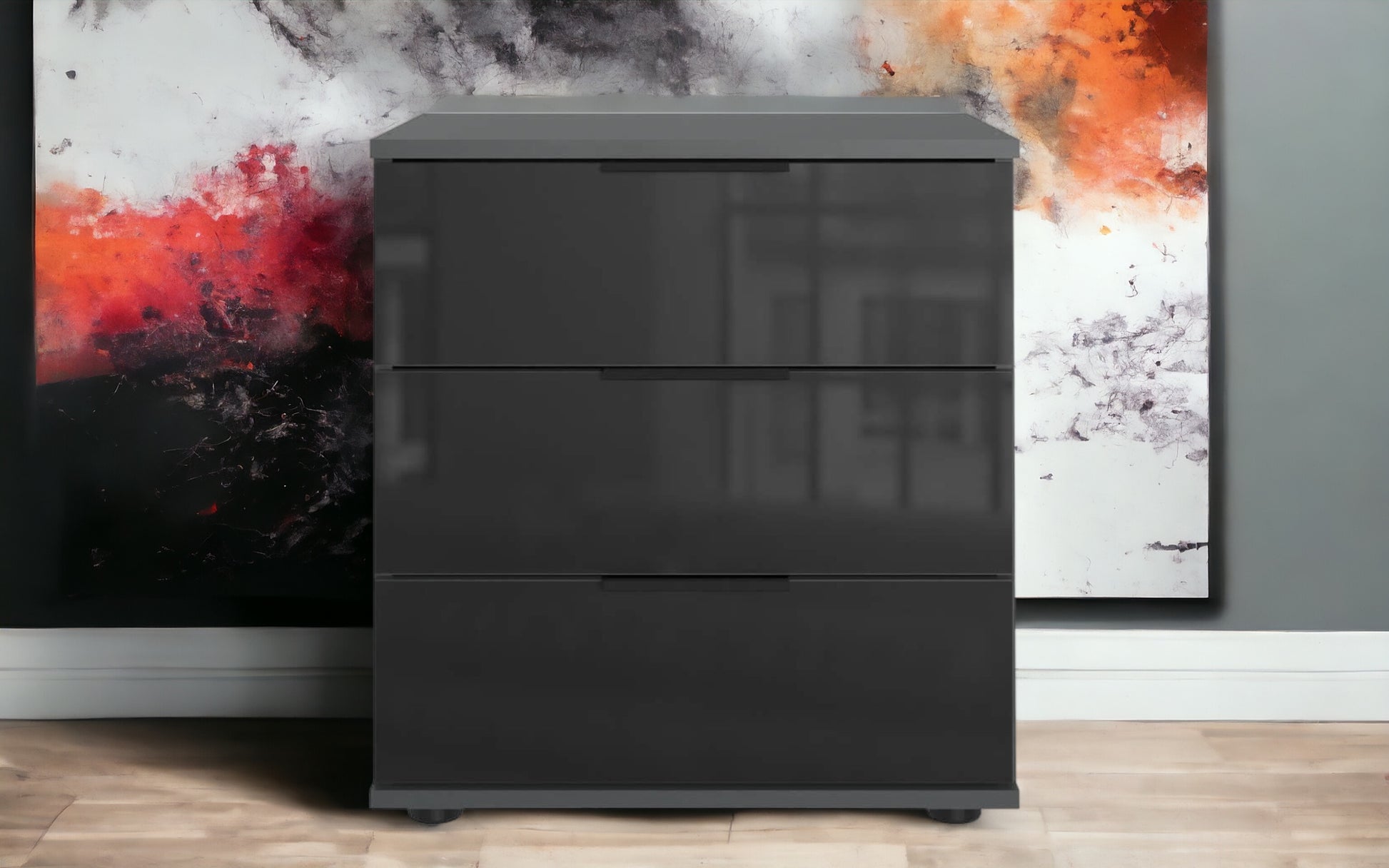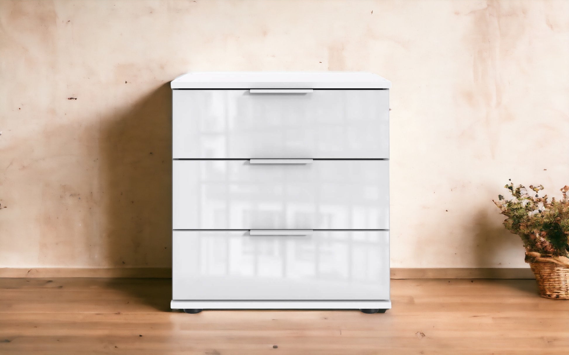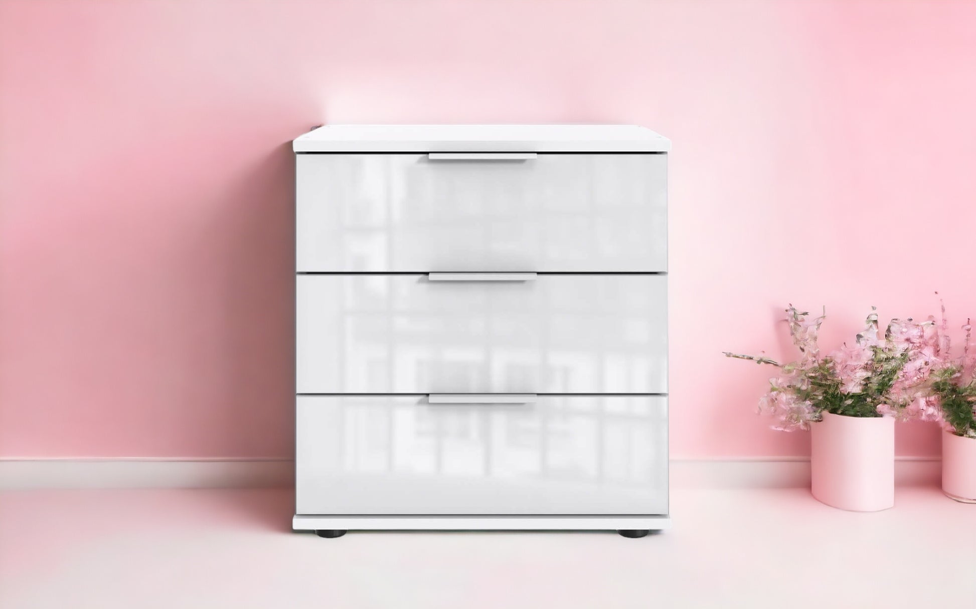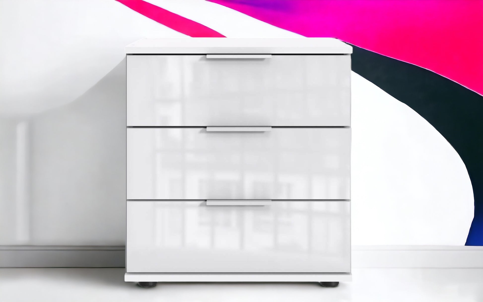 Mit 3 Schubladen. Dekor: Weiß, Schubladenfronten Glas Weiß.