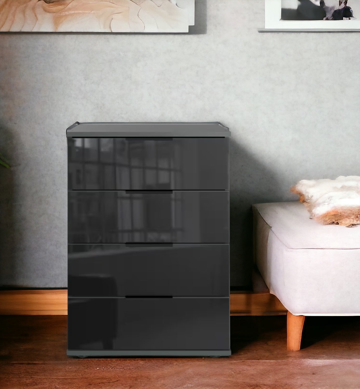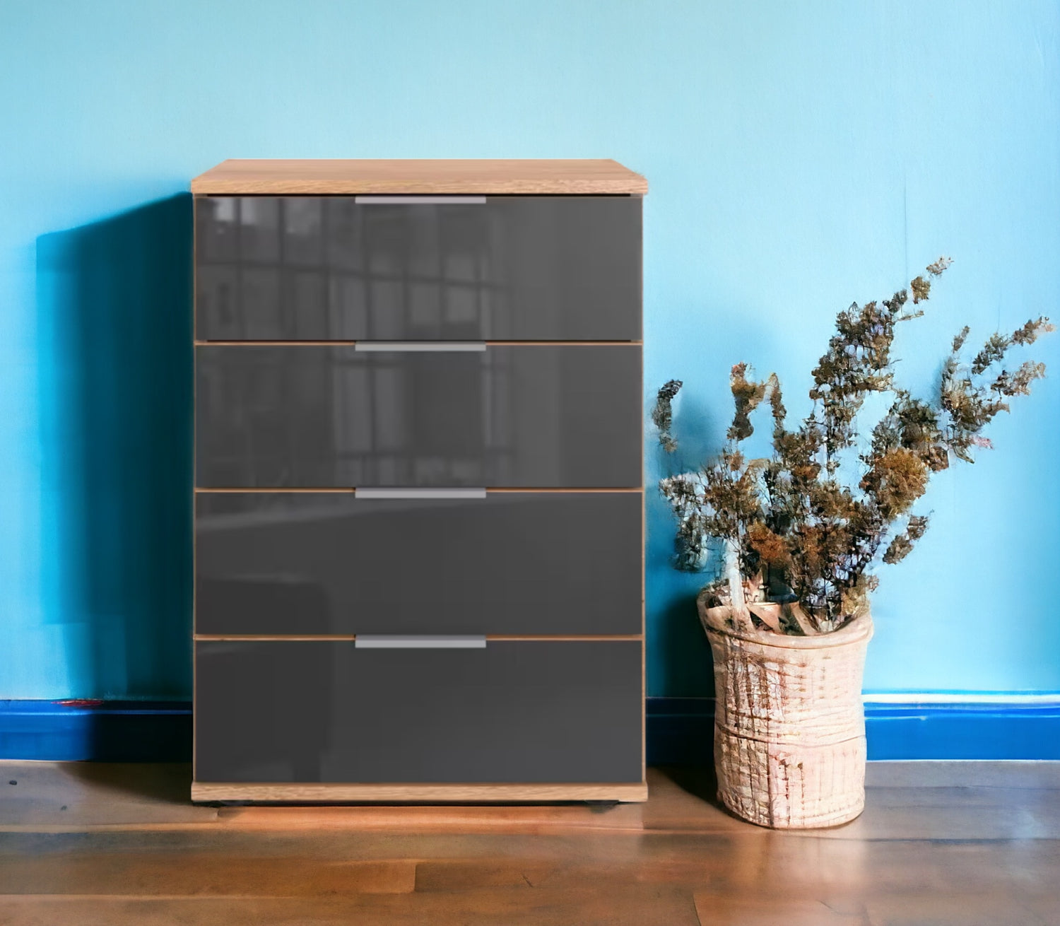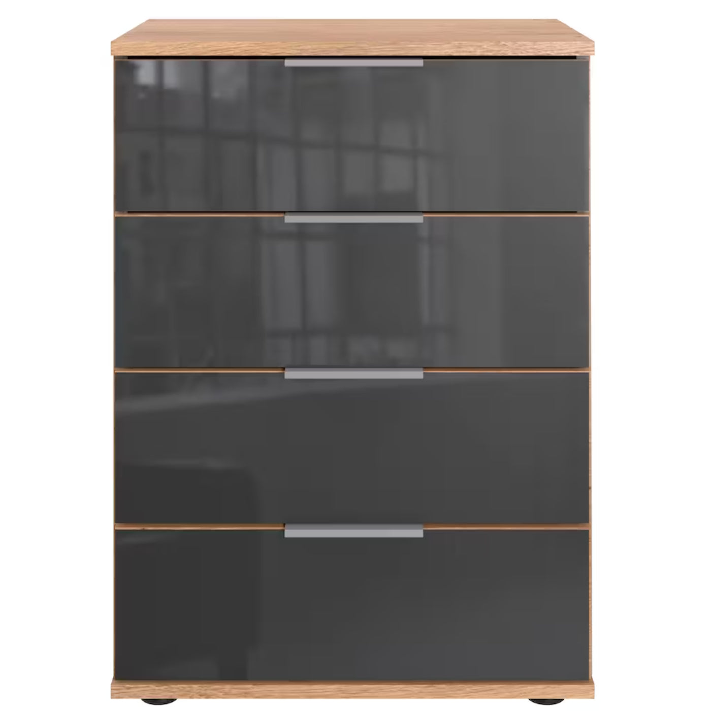 Mit 4 Schubladen. Dekor: Korpus Plankeneiche Nachbildung, Schubladenfront Farbglas Grey.