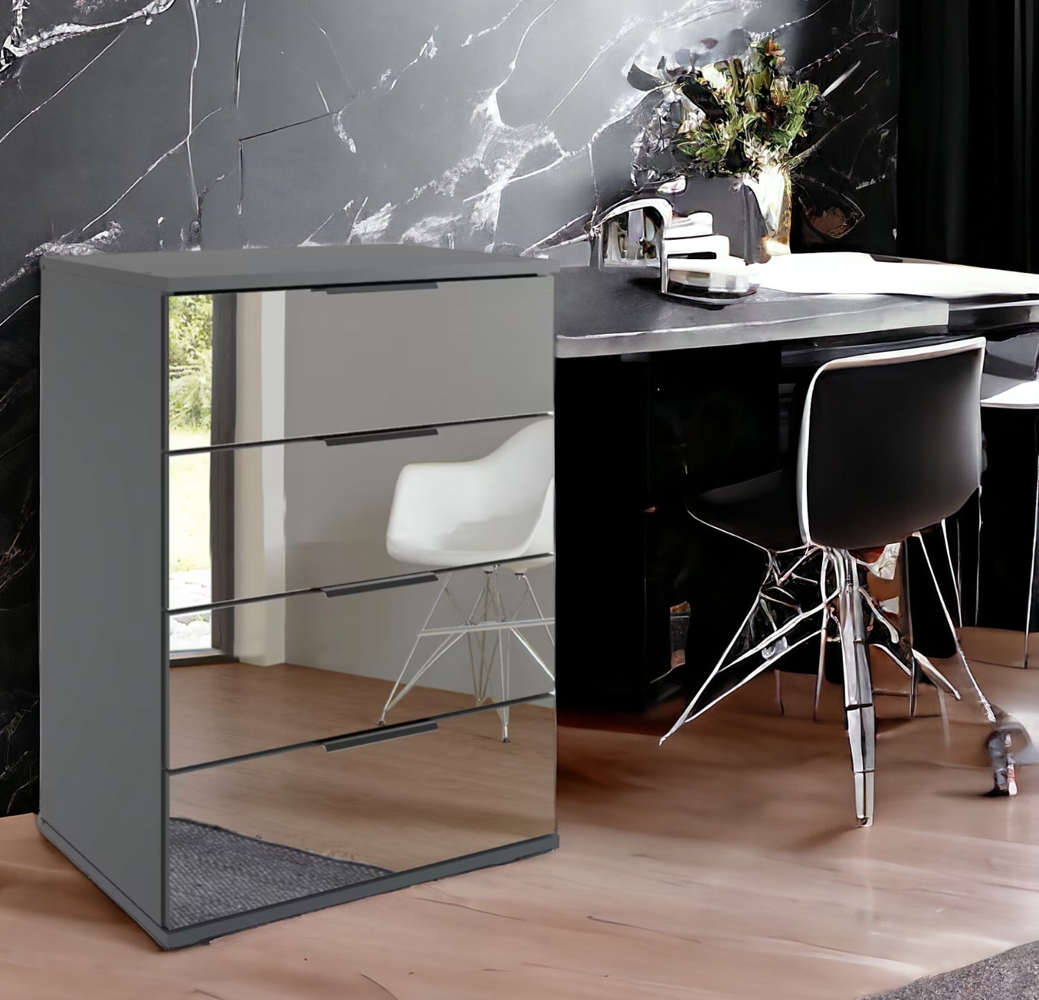 Erleben Sie modernen Stil und optimale Organisation mit dem Wimex Nachtschrank Saigon/Easy. Die 4 Schubladen bieten ausreichend Platz für Ihre persönlichen Gegenstände, während das schlanke Design Platz spart und Ihre Sinne inspiriert. Die Fronten aus Farbglas oder Spiegel verleiht ihm einen modernen und stilvollen Look. Gestalten Sie Ihr Schlafzimmer stilvoll und praktisch!