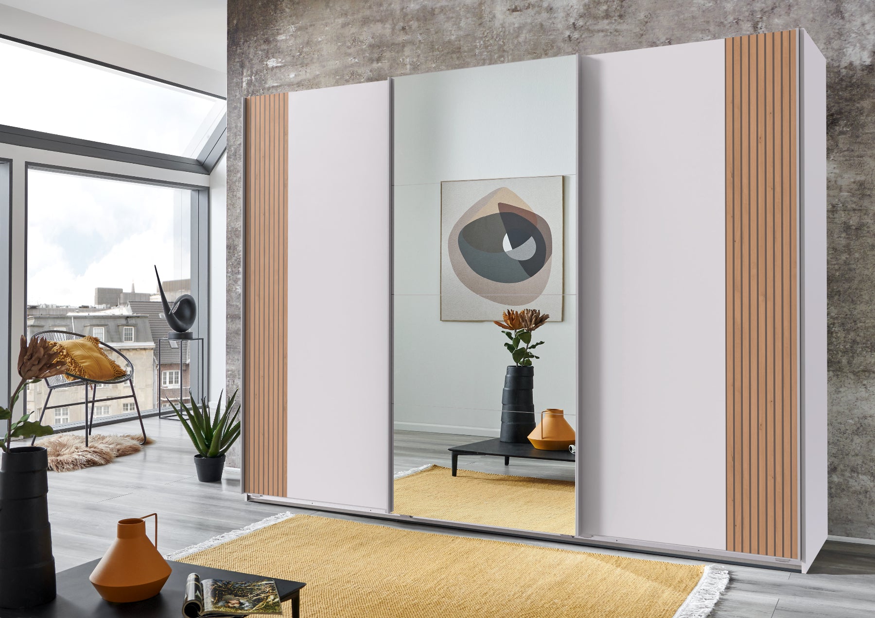 Schwebetürenschrank Malaga 3-türig mit Spiegeltür B/H/T ca. 270 x 208 x 64 cm