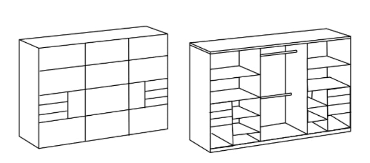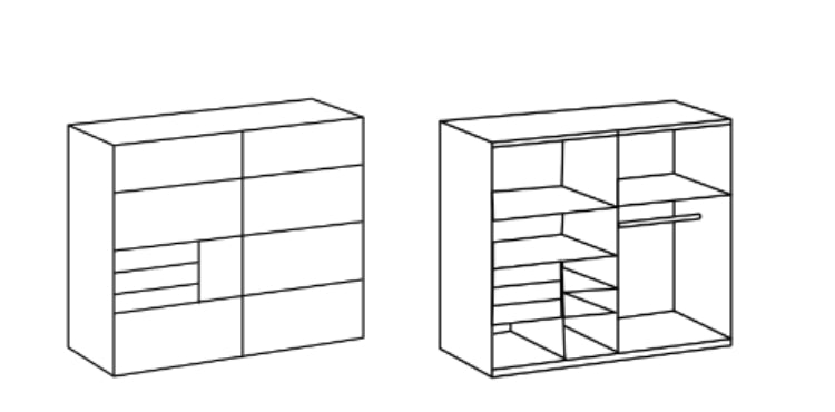 Mit großzügigem Stauraum und durchdachter Innenaufteilung bietet der Schrank nicht nur Platz für Ihre Kleidung, sondern auch eine Möglichkeit, Ordnung und Übersicht in Ihr Zuhause zu bringen. Der Schrank ist in 2 Ausführungen erhältlich: mit Spiegeltür oder mit Farbglastür. Geben Sie einfach "Saigon" in der Suchleiste auf unsere Website ein, und Sie finden all verfügbaren Varianten dieses Schranks.