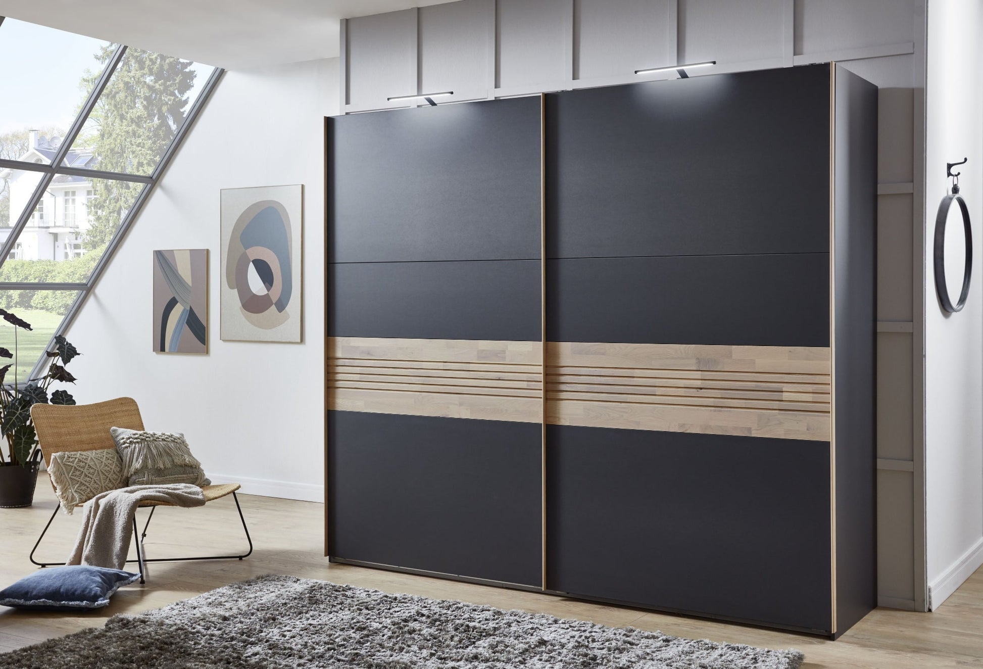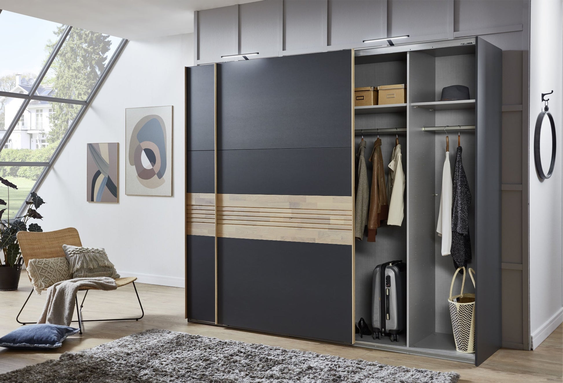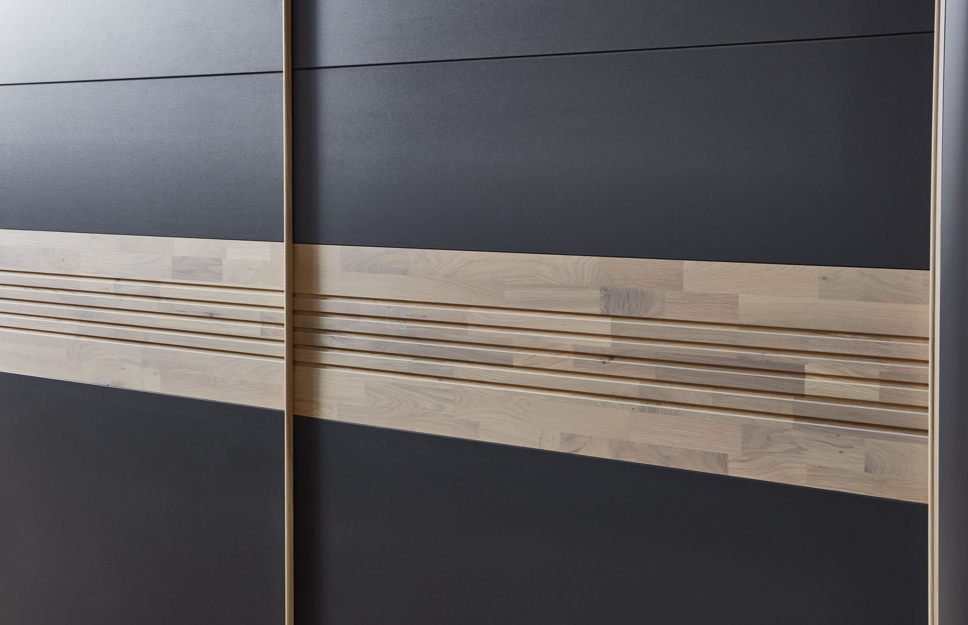 Entdecken Sie die unvergleichliche Raffinesse des Wimex Schwebetürenschrankes Tirol. Durch die schwebenden Türen erhält Ihr Raum ein exklusives Flair, während der praktische und geschmackvolle Schrank eine elegante Atmosphäre schafft. Wählen Sie zwischen den Farben Weiß oder Graphit, kombiniert mit edlen Massivholz-Eiche-Absetzungen, um Ihrem Zuhause ein Hauch von Luxus zu verleihen. B/H/T 250 x 216 x 65 cm.