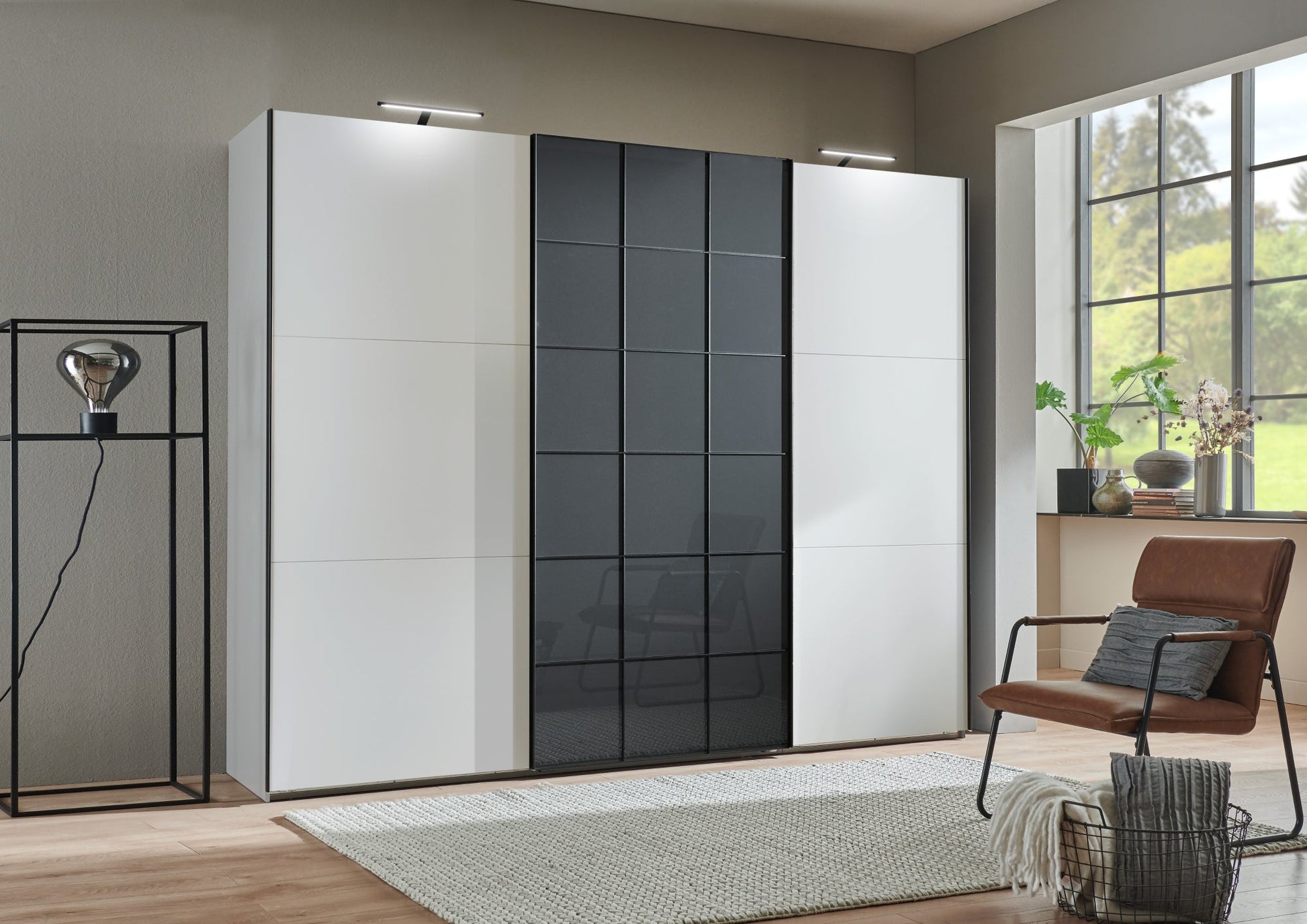 Schwebetürenschrank Toronto 3-türig mit Glastür B/H/T ca. 300 x 216 x 65 cm