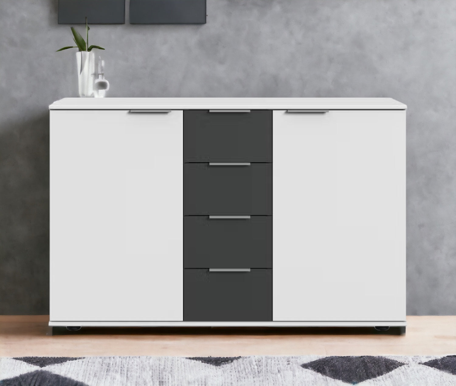 Diese moderne Wimex Kombikommode Valencia mit 2 Türen und 4 Schubladen ist eine platzsparende Lösung für Ihre Schlafzimmereinrichtung. Mit einer Größe von ca. 130 x 83 x 41 cm bietet sie ausreichend Stauraum für Kleidung, Bettwäsche und mehr. Verleihen Sie Ihrem Zimmer mit dieser Kommode einen zeitgemäßen Look und halten Sie alles ordentlich und organisiert.