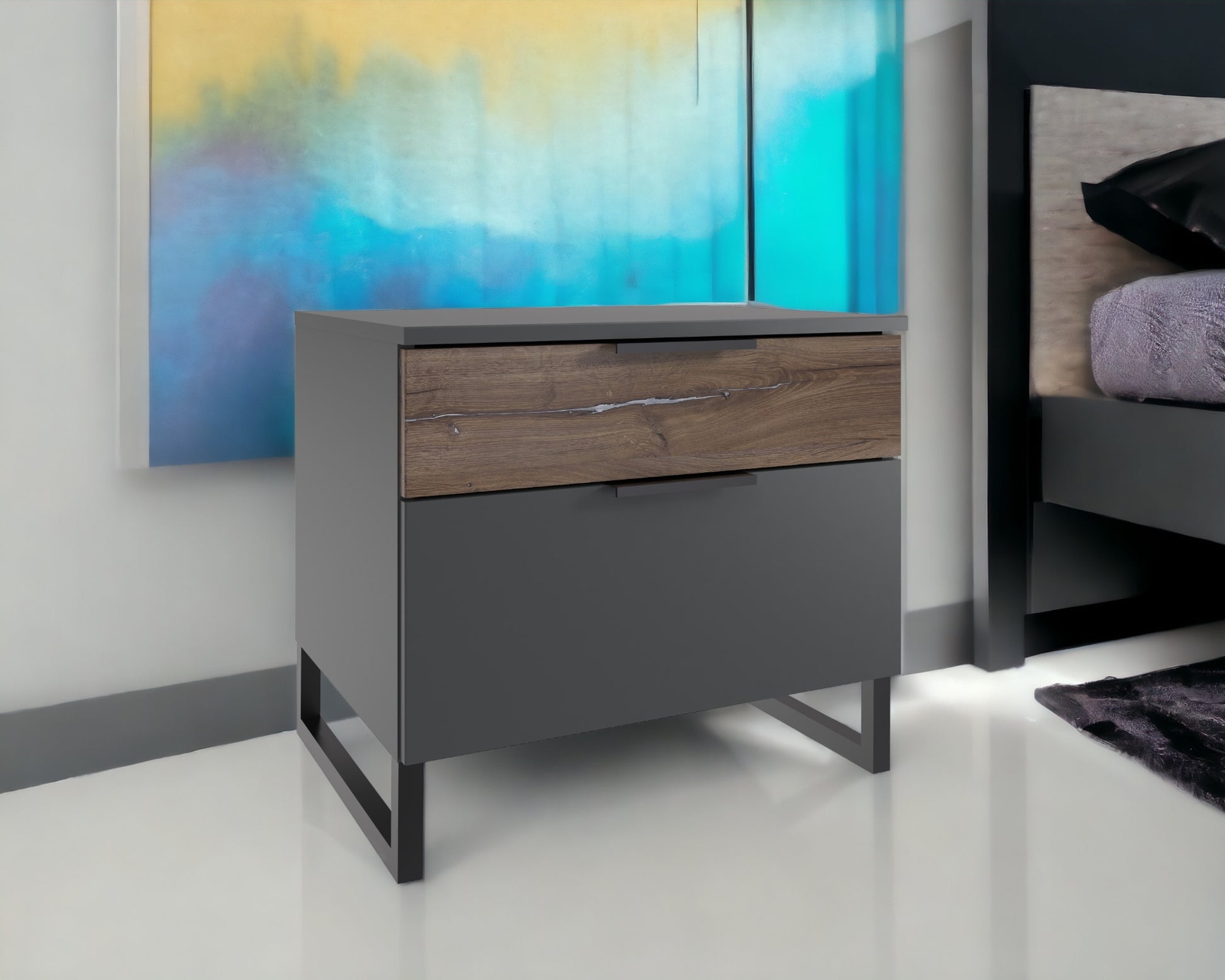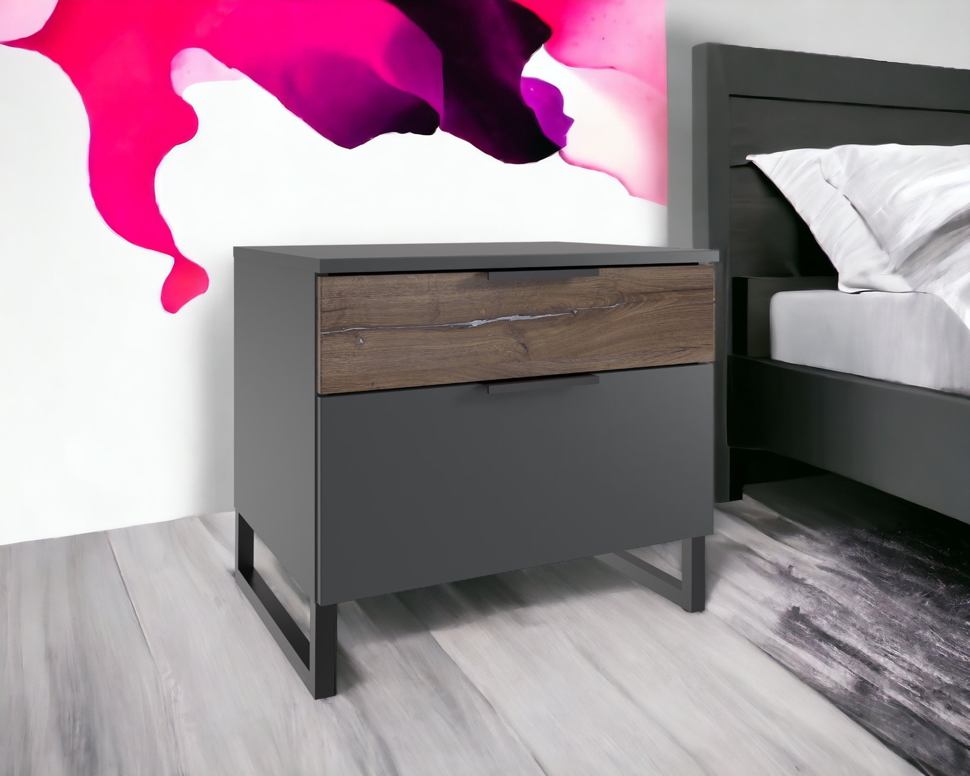 Erwecken Sie das moderne Design Ihres Schlafzimmers mit dem Wimex Nachtschrank Winnipeg! Mit seinen schwarz lackierten Metallkufen verleiht er jedem Raum eine stilvolle Note. Zwei geräumige Schubladen bieten Platz für alle Ihre wichtigen Dinge und sorgen für Ordnung und Übersichtlichkeit. Gönnen Sie sich ein einfaches und funktionales Möbelstück, das Ihr Zuhause bereichert!