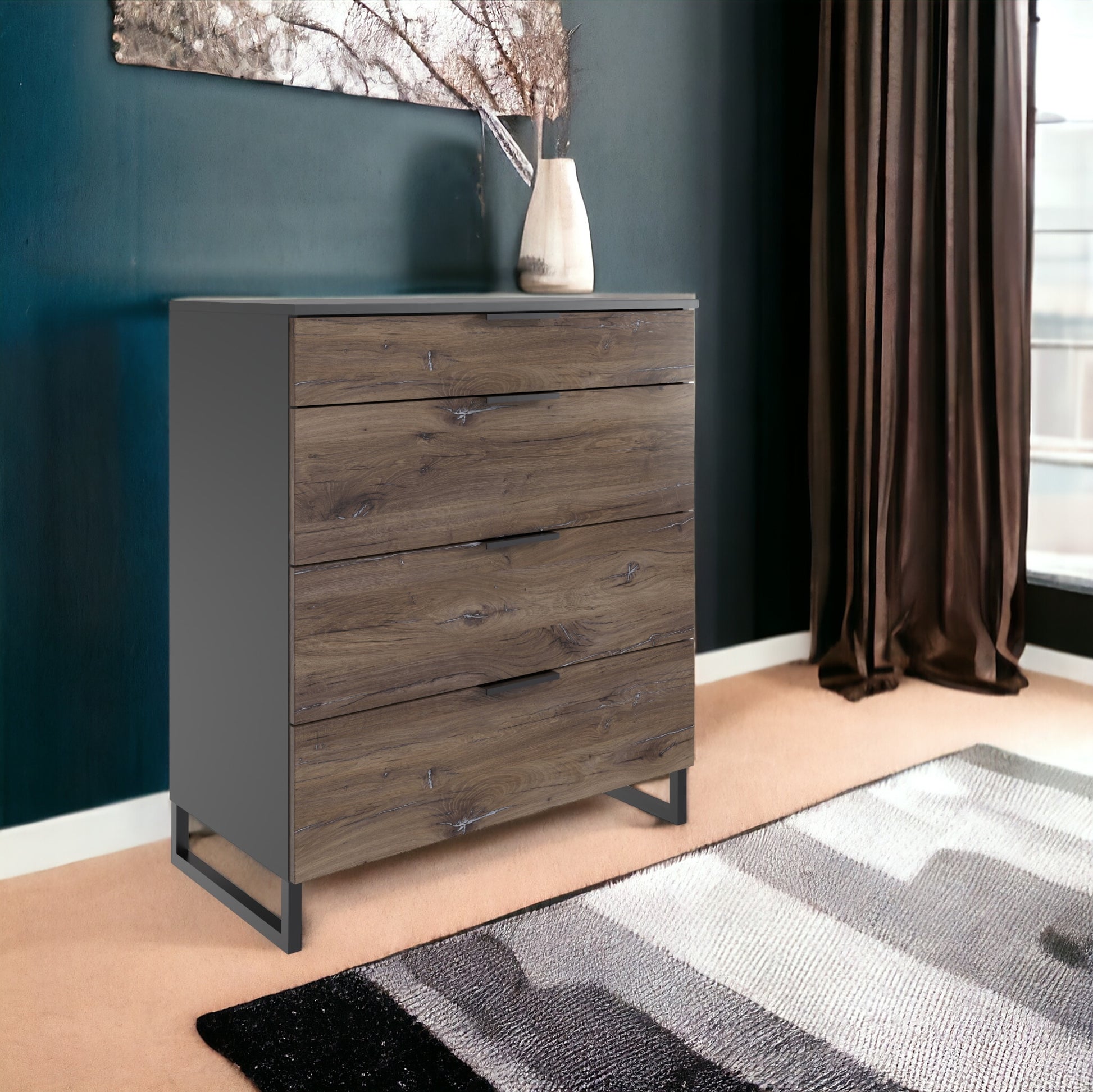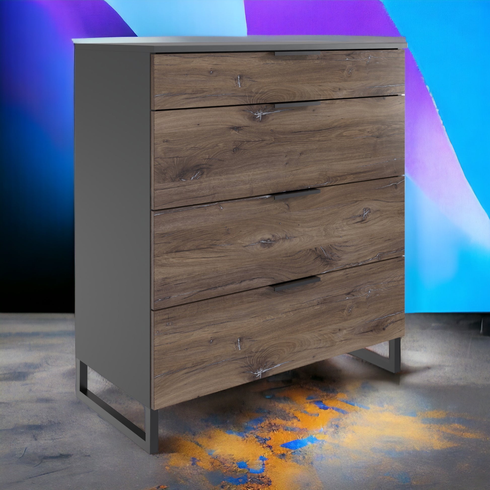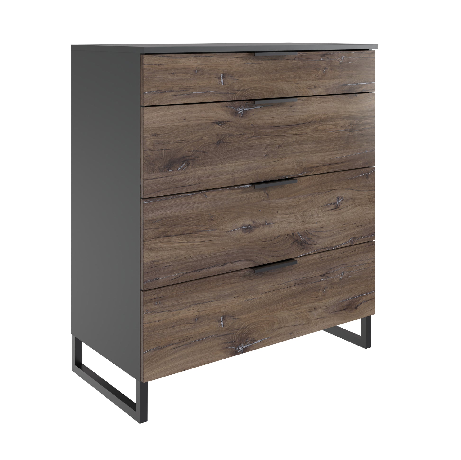 Mit 4 Schubladen. Dekor: Front Flagstaff Eiche Nachbildung, Korpus Graphit, Abs. Graphit.